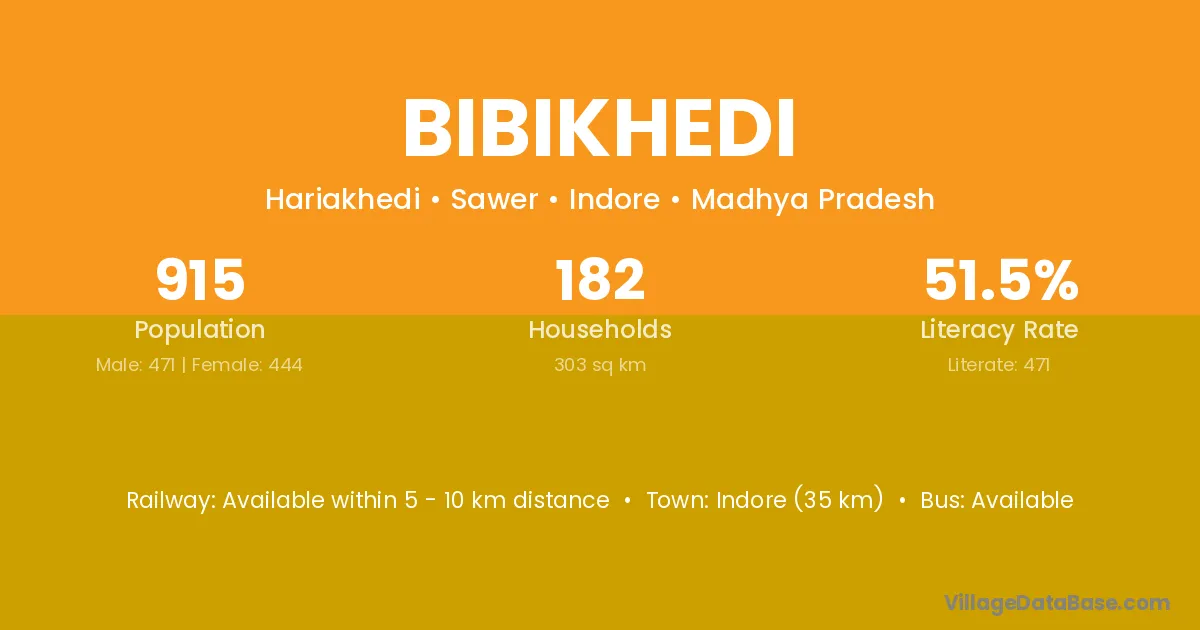 Bibikhedi village has a total population of 915 people, of which 471 are males and 444 are females.