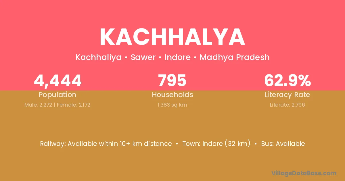 Indore (32 km) is the nearest town to Kachhalya village for major economic activities and is located approximately 32 km away.