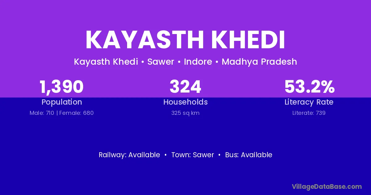 Kayasth Khedi village has a total population of 1,390 people, of which 710 are males and 680 are females.