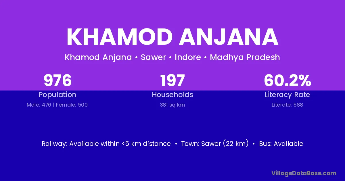 Sawer (22 km) is the nearest town to Khamod Anjana village for major economic activities and is located approximately 22 km away.
