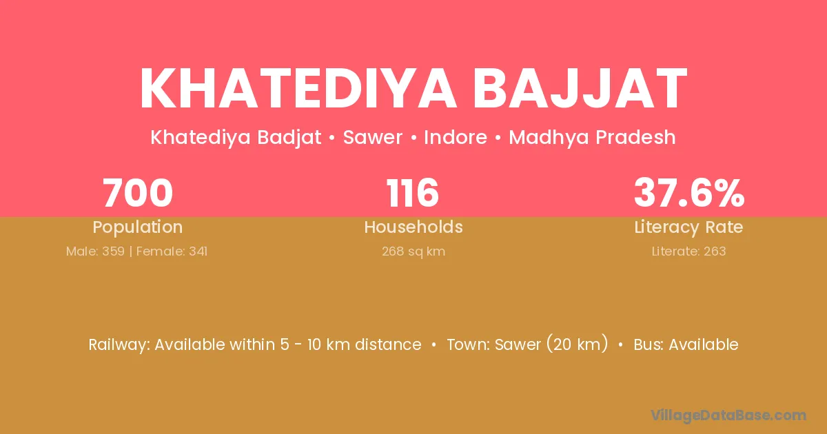 Khatediya Bajjat village has a total population of 700 people, of which 359 are males and 341 are females.