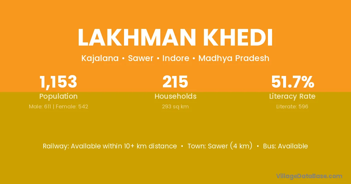 Lakhman Khedi village has a total population of 1,153 people, of which 611 are males and 542 are females.