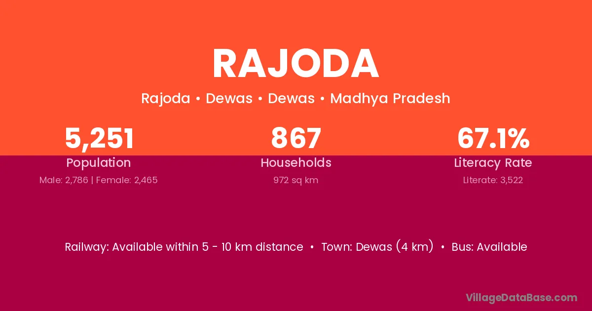 Sawer (12 km) is the nearest town to Rajoda village for major economic activities and is located approximately 12 km away.