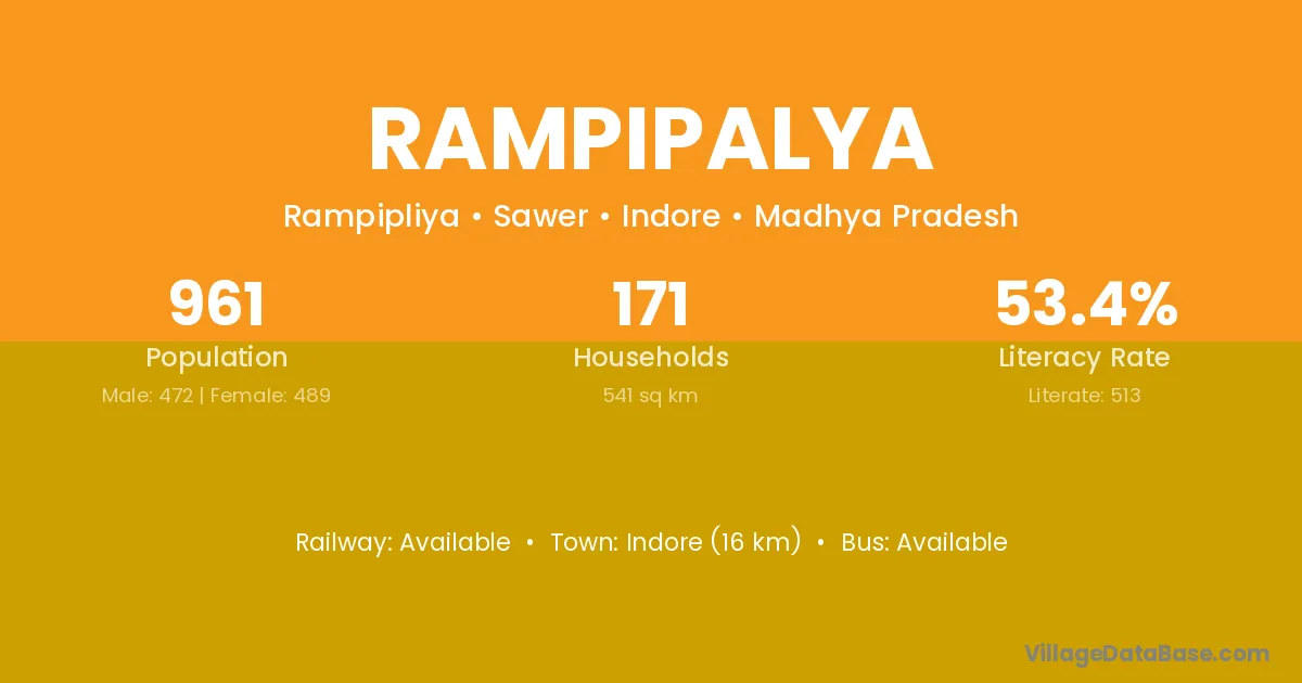 Indore (16 km) is the nearest town to Rampipalya village for major economic activities and is located approximately 16 km away.