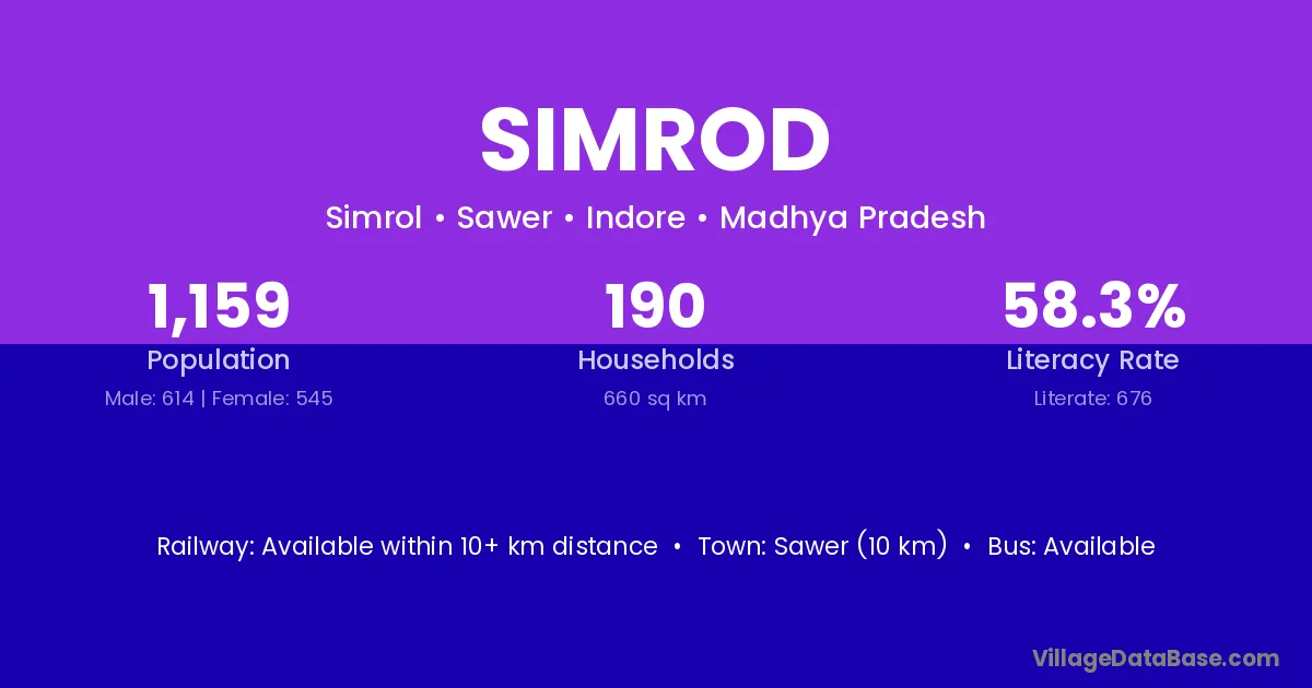 Sawer (10 km) is the nearest town to Simrod village for major economic activities and is located approximately 10 km away.