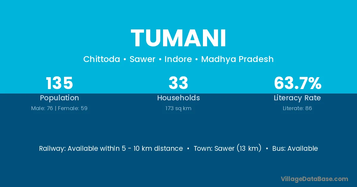 Tumani village is located in the Sawer Tehsil of the Indore district in Madhya Pradesh .
