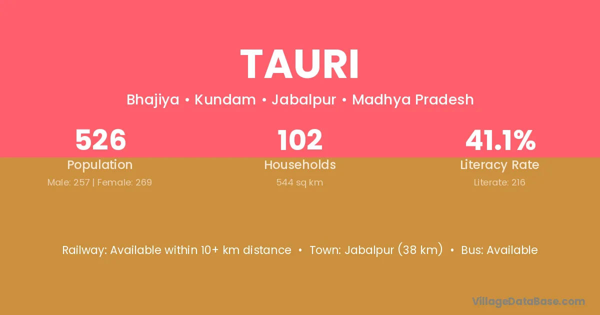 Jabalpur (38 km) is the nearest town to Tauri village for major economic activities and is located approximately 38 km away.