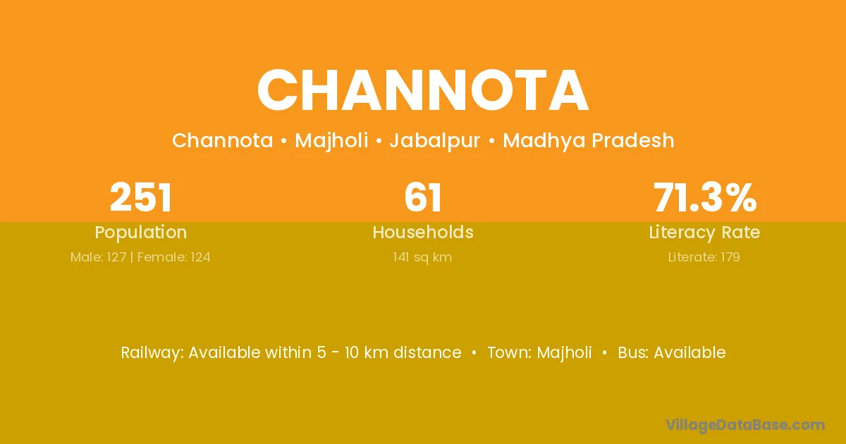 Channota village has a total population of 251 people, of which 127 are males and 124 are females.