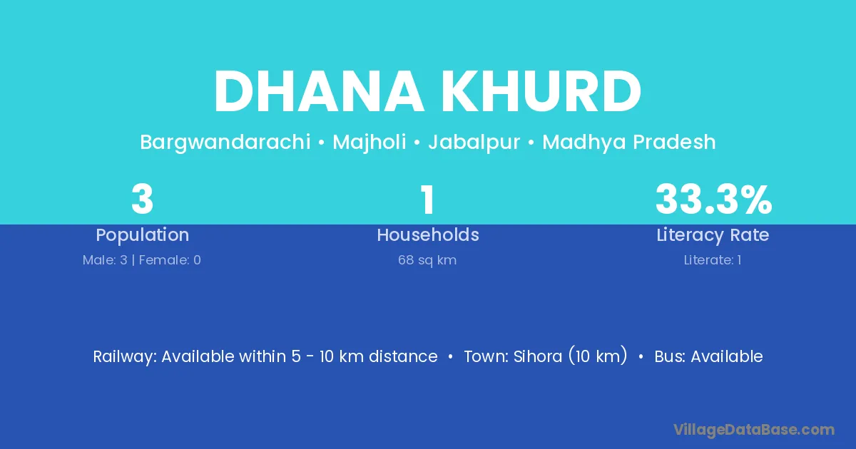 Dhana Khurd village has a total population of 3 people, of which 3 are males and 0 are females.