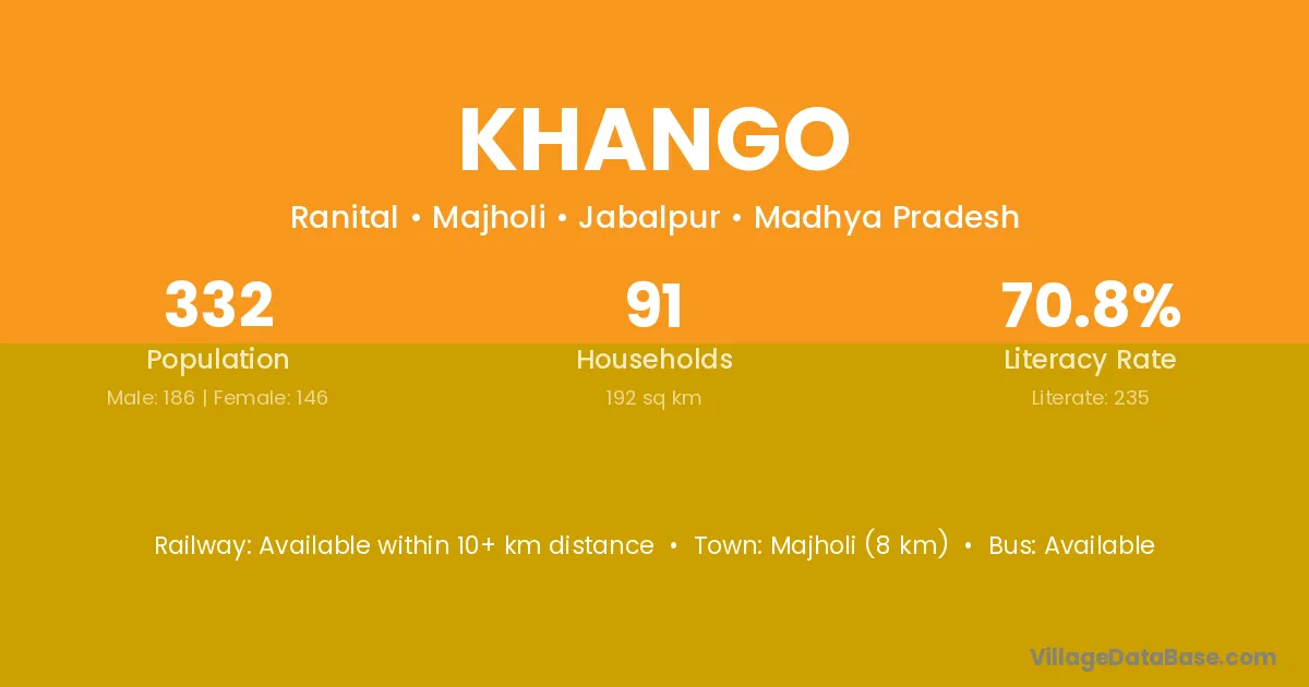 Majholi (8 km) is the nearest town to Khango village for major economic activities and is located approximately 8 km away.