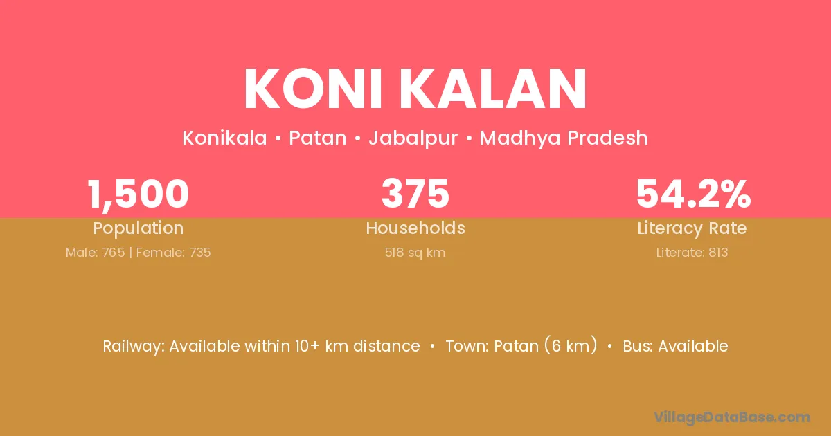 Majholi (4 km) is the nearest town to Koni Kalan village for major economic activities and is located approximately 4 km away.
