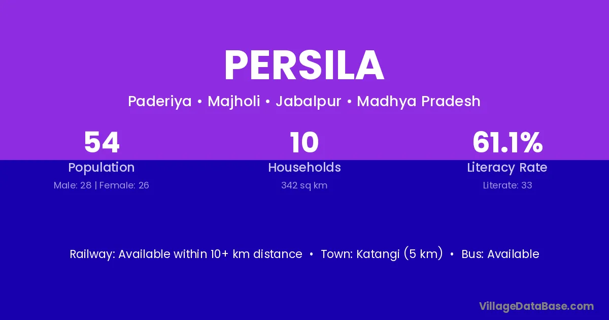 Katangi (5 km) is the nearest town to Persila village for major economic activities and is located approximately 5 km away.