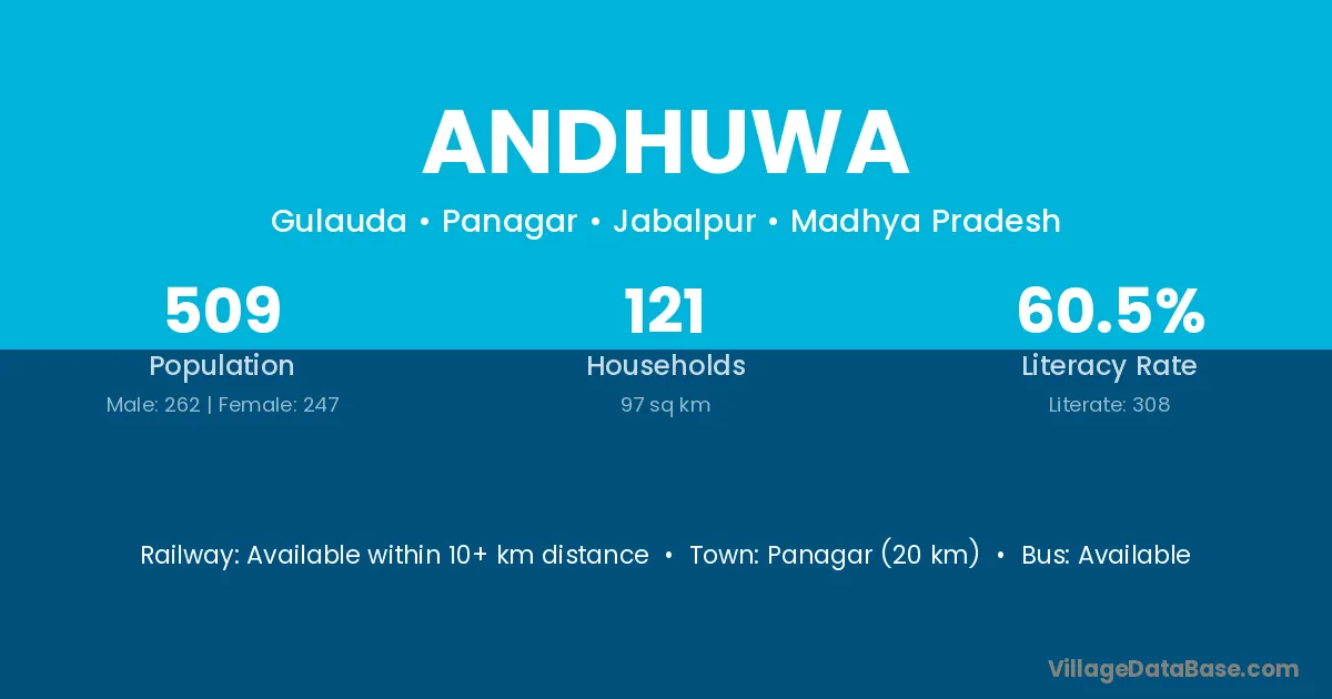 Panagar (20 km) is the nearest town to Andhuwa village for major economic activities and is located approximately 20 km away.