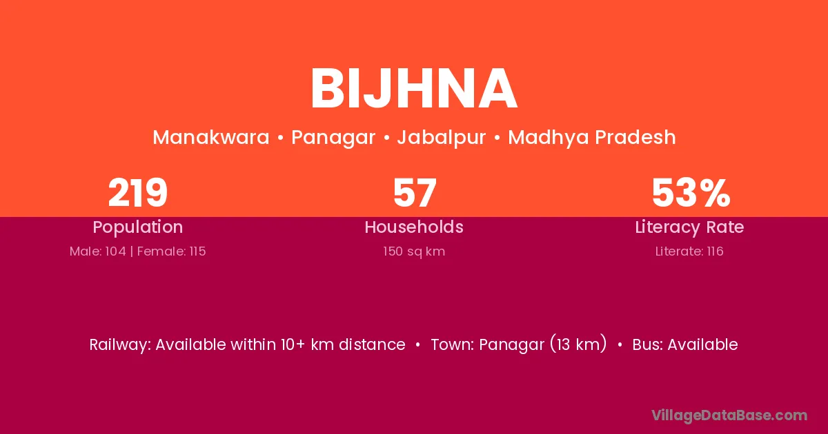 Panagar (13 km) is the nearest town to Bijhna village for major economic activities and is located approximately 13 km away.
