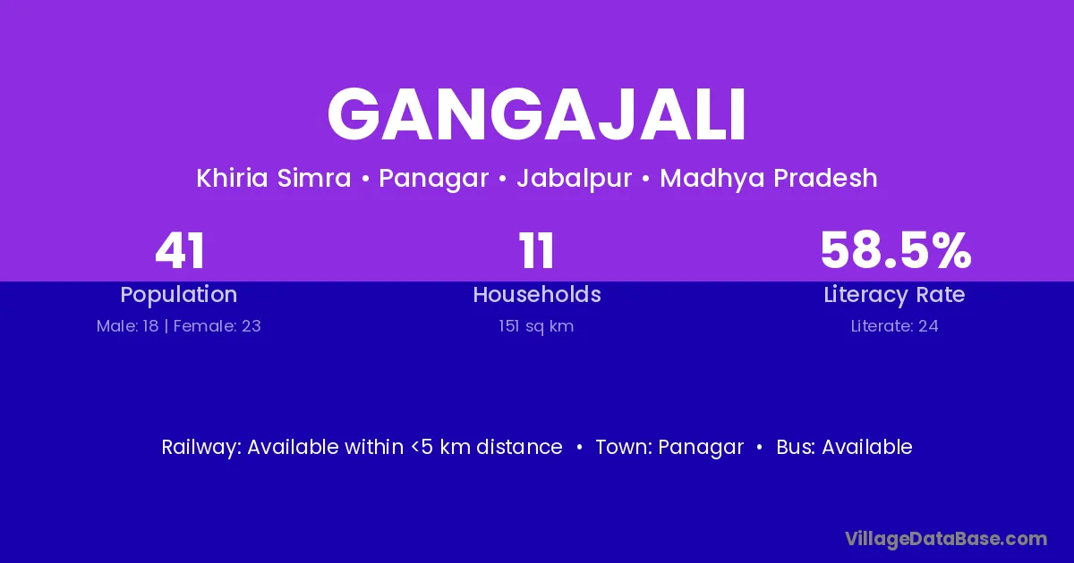 Gangajali village has a total population of 41 people, of which 18 are males and 23 are females.