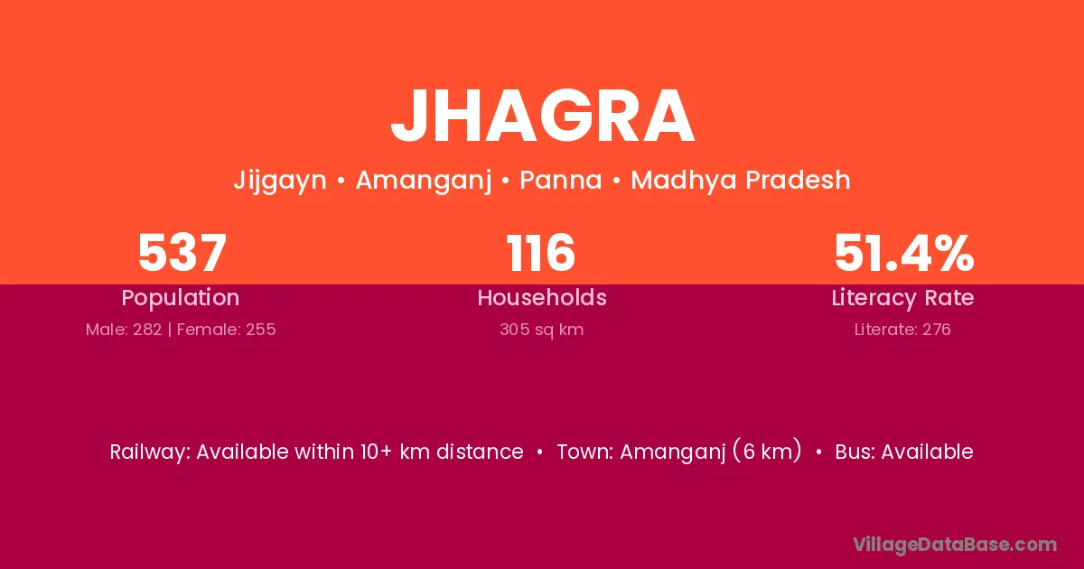 Panagar (16 km) is the nearest town to Jhagra village for major economic activities and is located approximately 16 km away.