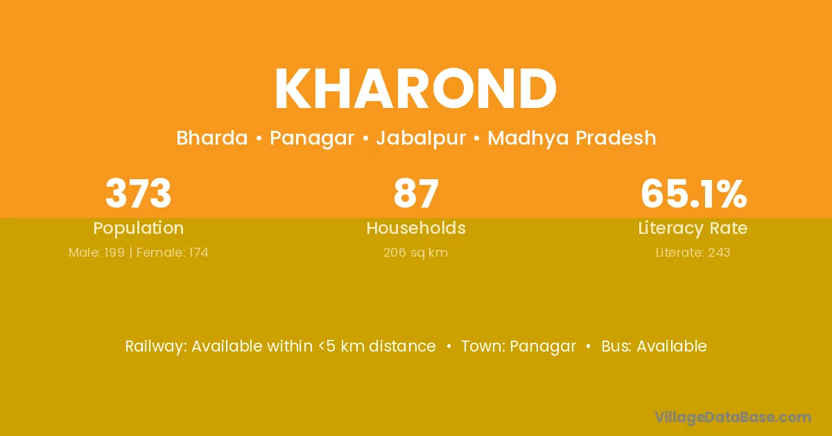 Kharond village has a total population of 373 people, of which 199 are males and 174 are females.