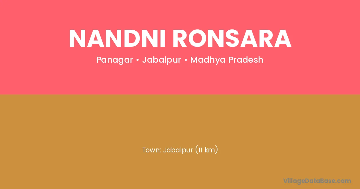Jabalpur (11 km) is the nearest town to Nandni Ronsara village for major economic activities and is located approximately 11 km away.