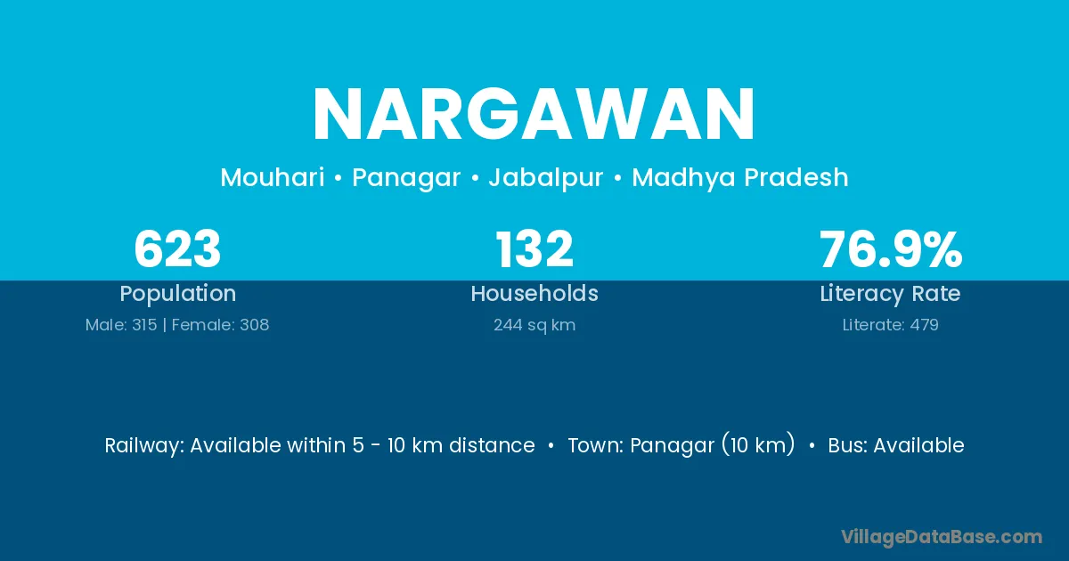 Nargawan village has a total population of 623 people, of which 315 are males and 308 are females.