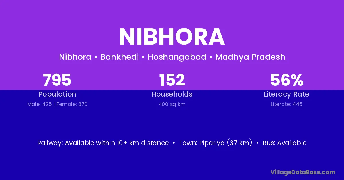 Panagar (4 km) is the nearest town to Nibhora village for major economic activities and is located approximately 4 km away.