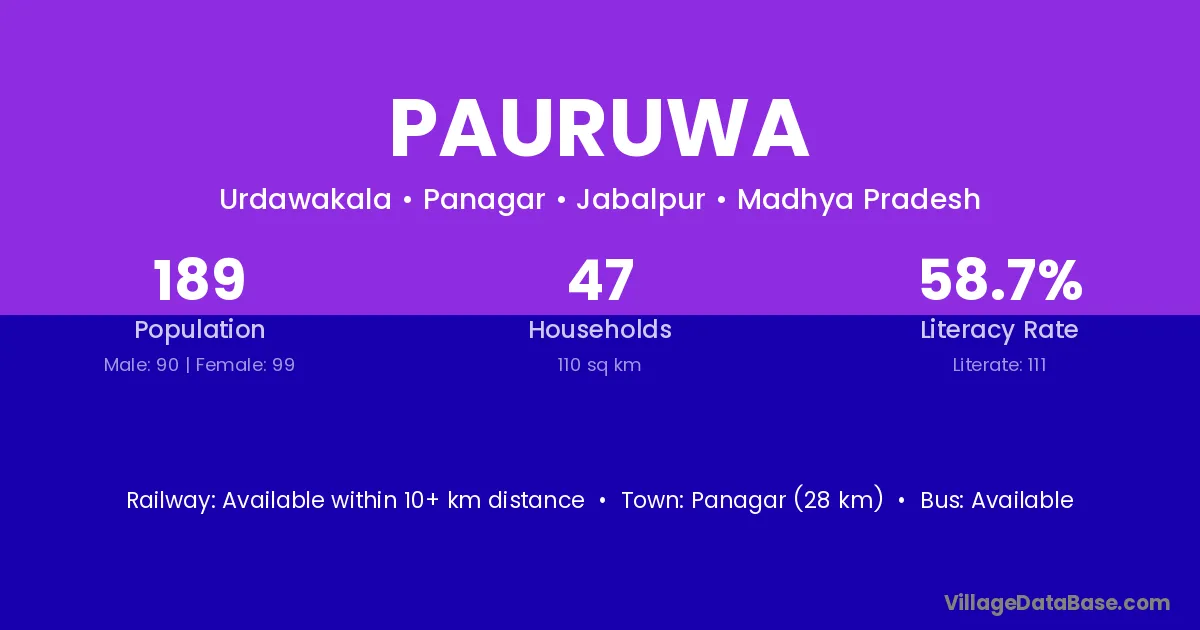 Panagar (28 km) is the nearest town to Pauruwa village for major economic activities and is located approximately 28 km away.