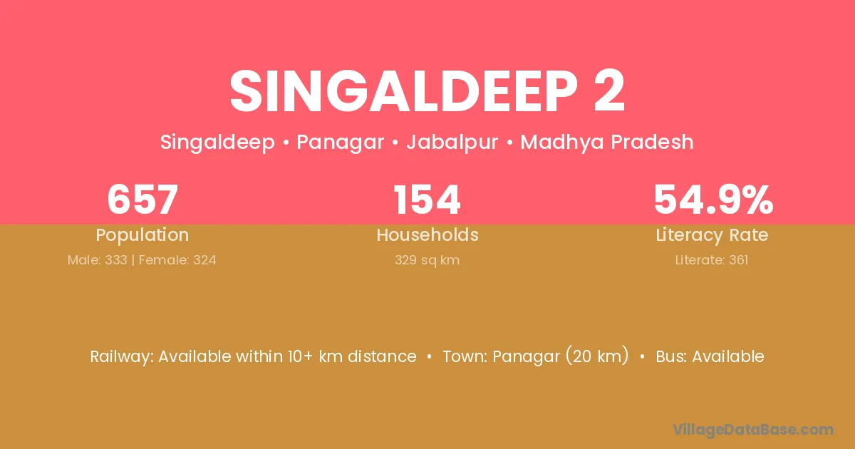 Panagar (20 km) is the nearest town to Singaldeep 2 village for major economic activities and is located approximately 20 km away.