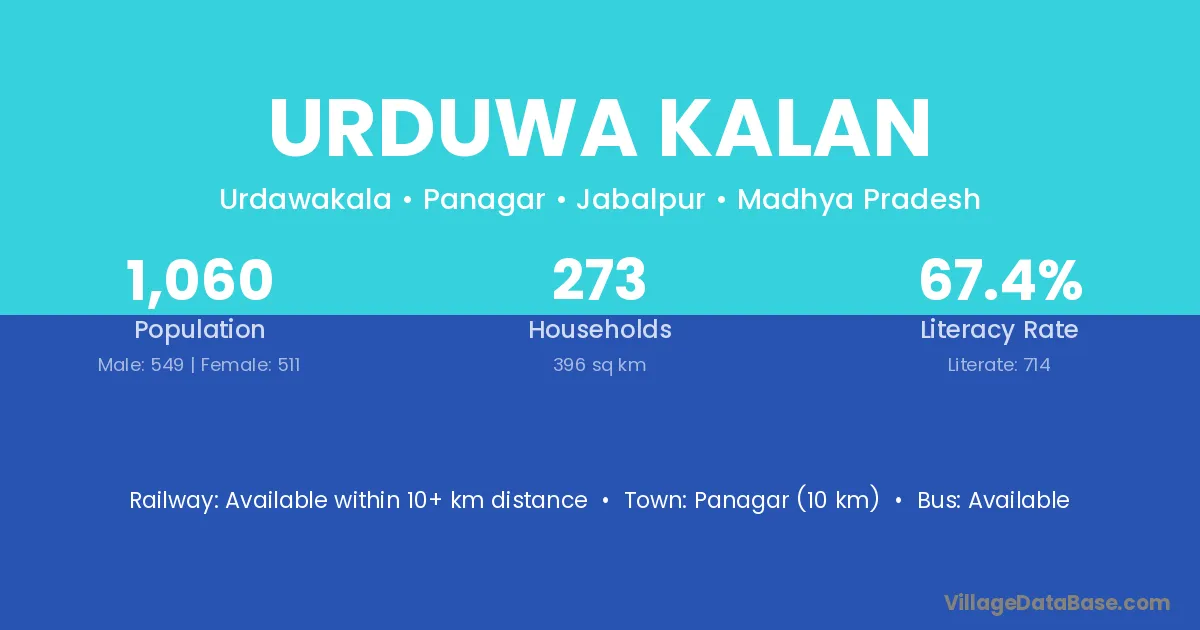 Panagar (10 km) is the nearest town to Urduwa Kalan village for major economic activities and is located approximately 10 km away.