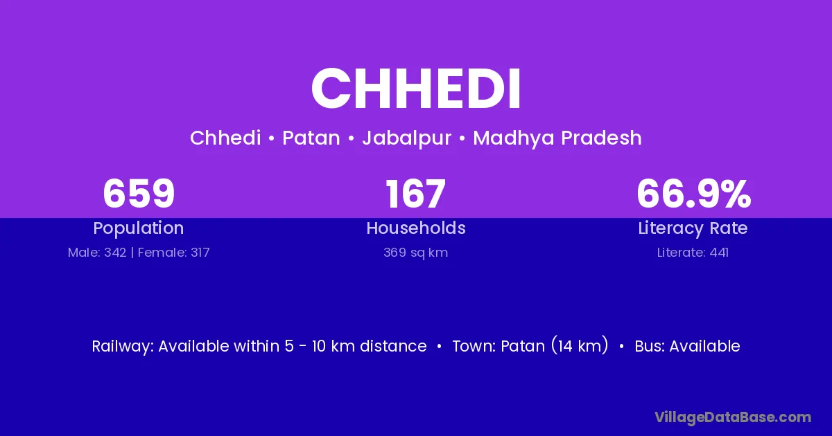 Chhedi village is located in the Patan Tehsil of the Jabalpur district in Madhya Pradesh .