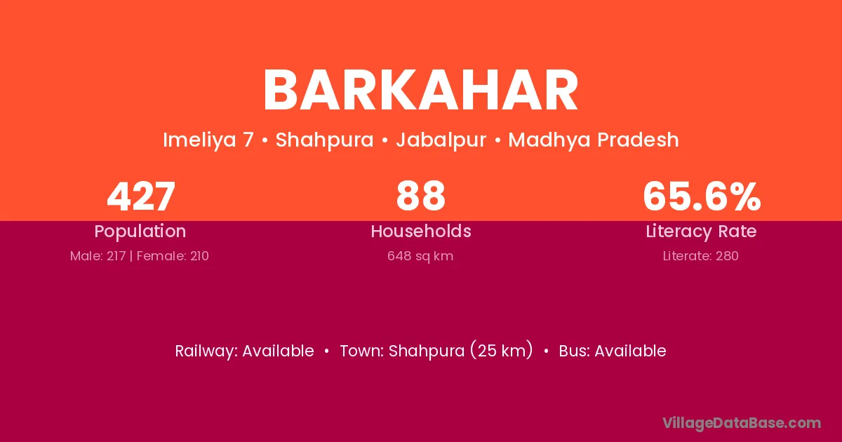 Barkahar village has a total population of 427 people, of which 217 are males and 210 are females.