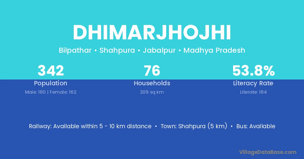 Shahpura (5 km) is the nearest town to Dhimarjhojhi village for major economic activities and is located approximately 5 km away.