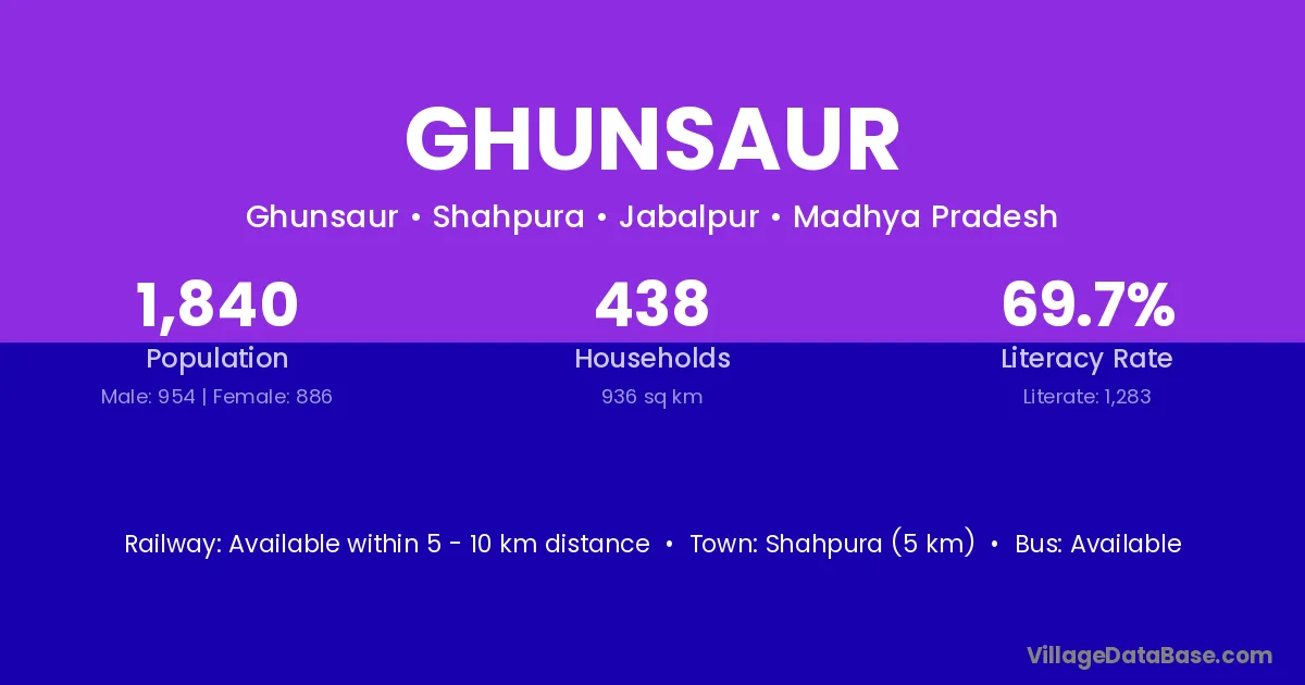 Shahpura (5 km) is the nearest town to Ghunsaur village for major economic activities and is located approximately 5 km away.