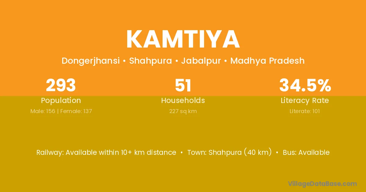 Shahpura (40 km) is the nearest town to Kamtiya village for major economic activities and is located approximately 40 km away.