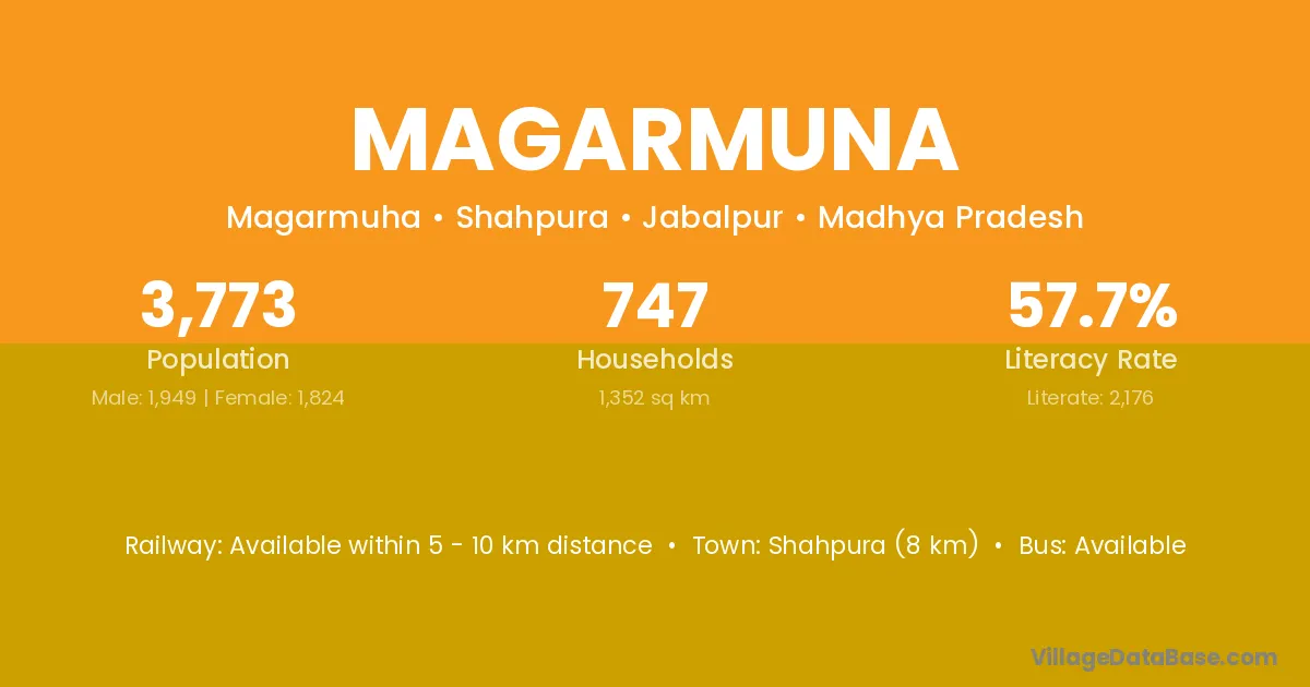Shahpura (8 km) is the nearest town to Magarmuna village for major economic activities and is located approximately 8 km away.