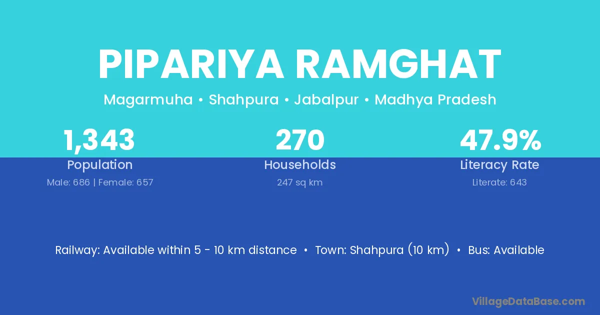 Shahpura (10 km) is the nearest town to Pipariya Ramghat village for major economic activities and is located approximately 10 km away.