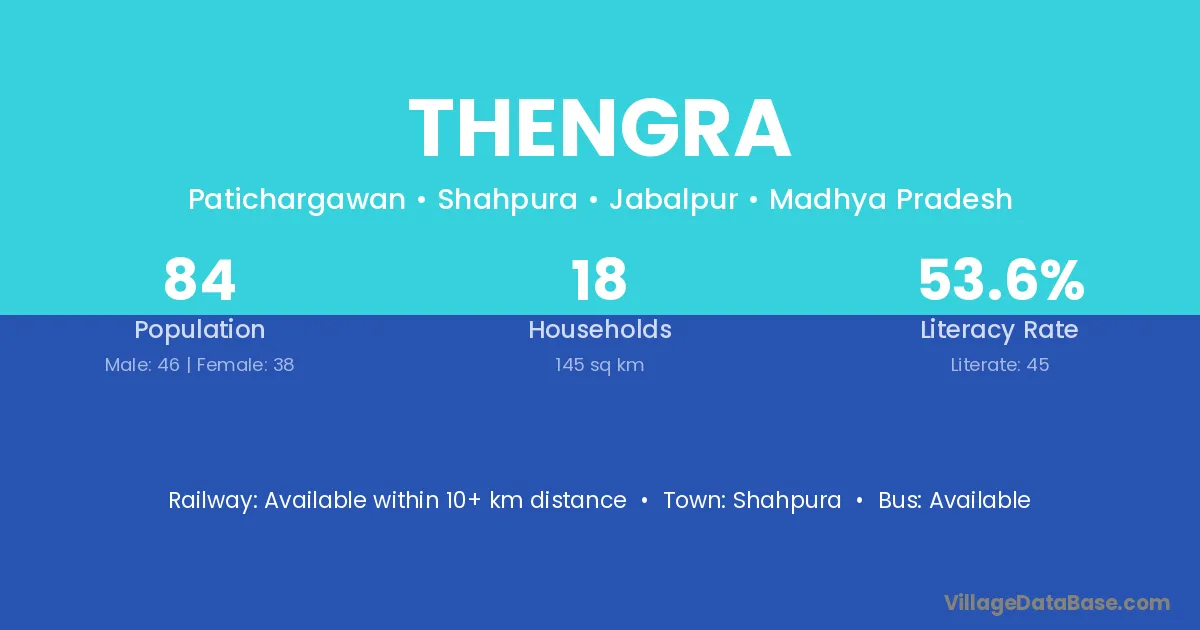 Thengra village has a total population of 84 people, of which 46 are males and 38 are females.