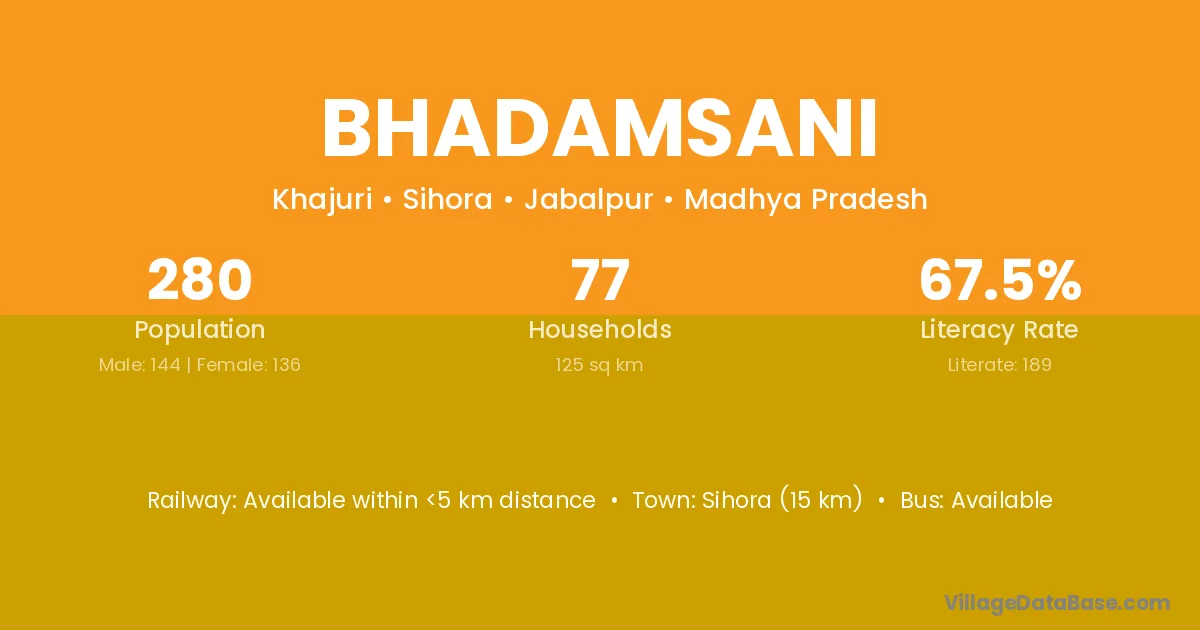 Sihora (15 km) is the nearest town to Bhadamsani village for major economic activities and is located approximately 15 km away.