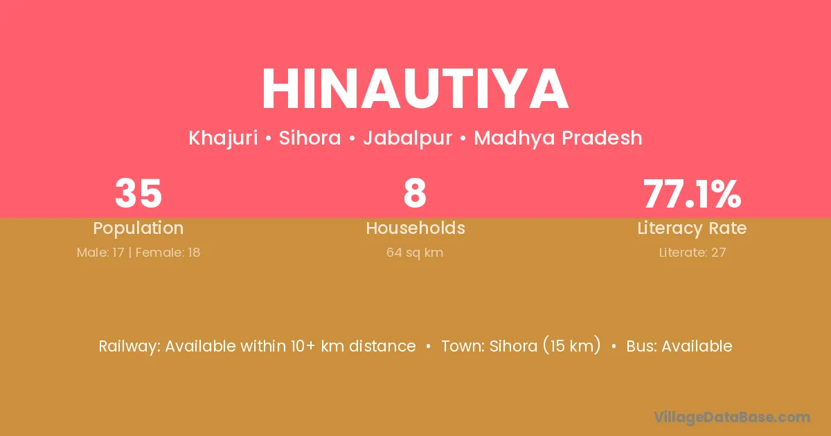 Sihora (15 km) is the nearest town to Hinautiya village for major economic activities and is located approximately 15 km away.