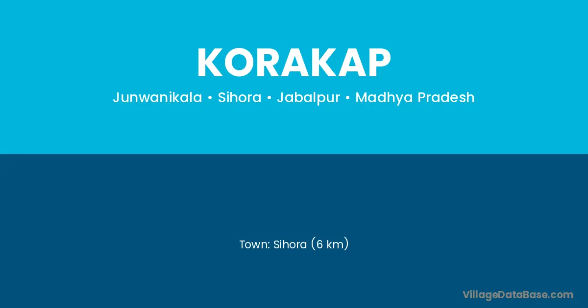 Sihora (6 km) is the nearest town to Korakap village for major economic activities and is located approximately 6 km away.