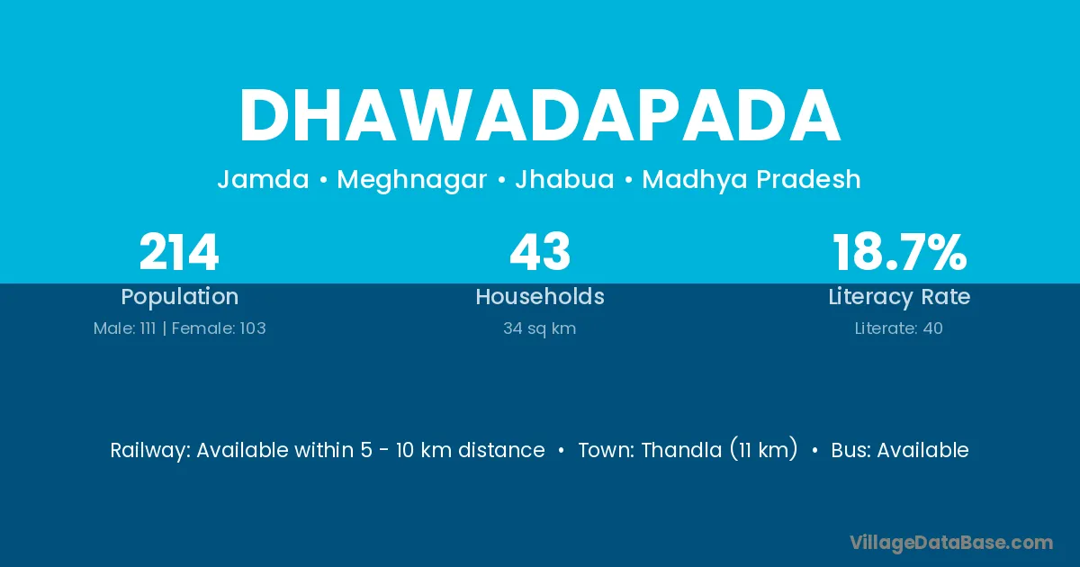 Thandla (11 km) is the nearest town to Dhawadapada village for major economic activities and is located approximately 11 km away.