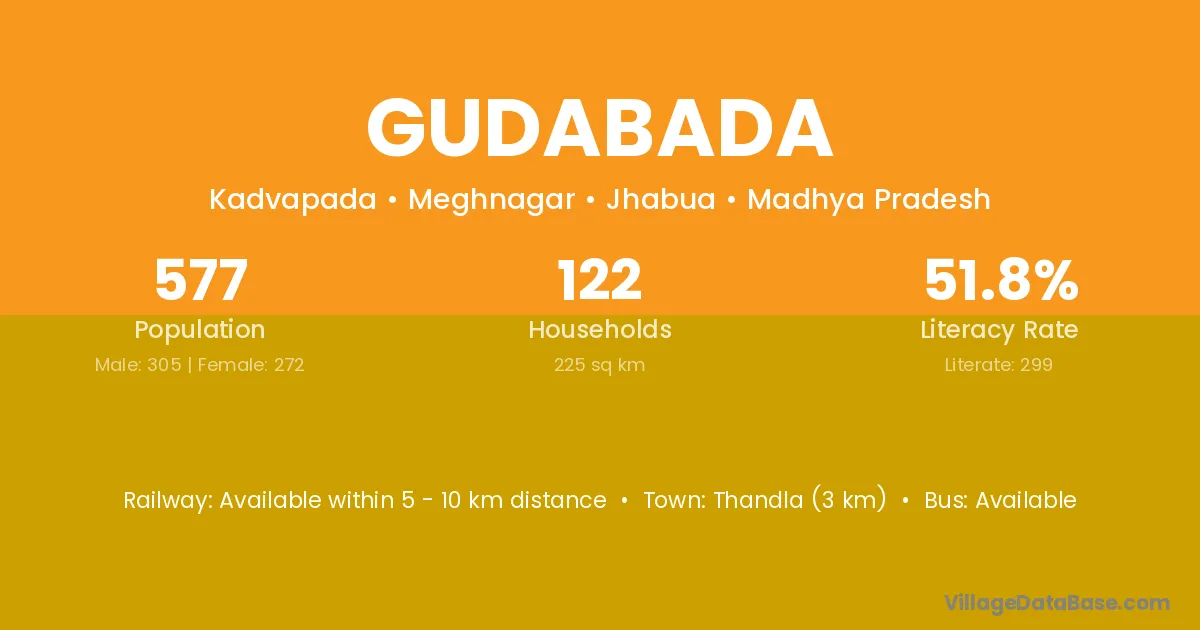 Thandla (3 km) is the nearest town to Gudabada village for major economic activities and is located approximately 3 km away.