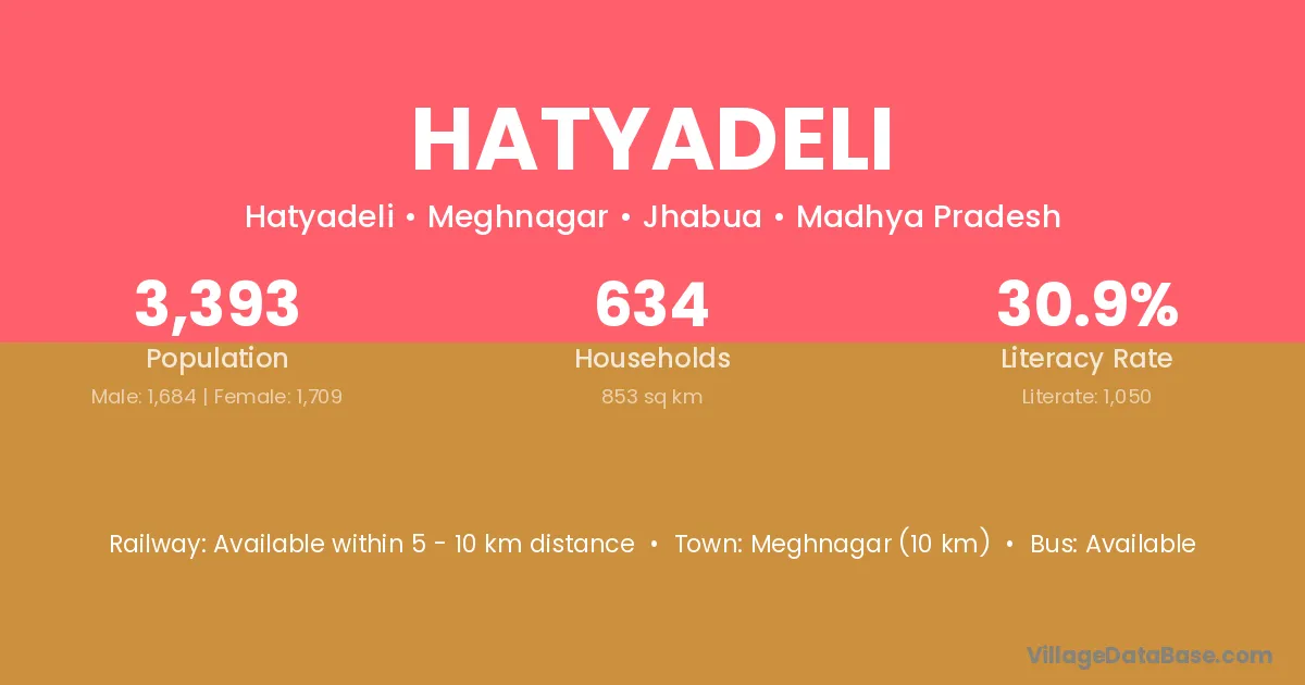 Meghnagar (10 km) is the nearest town to Hatyadeli village for major economic activities and is located approximately 10 km away.
