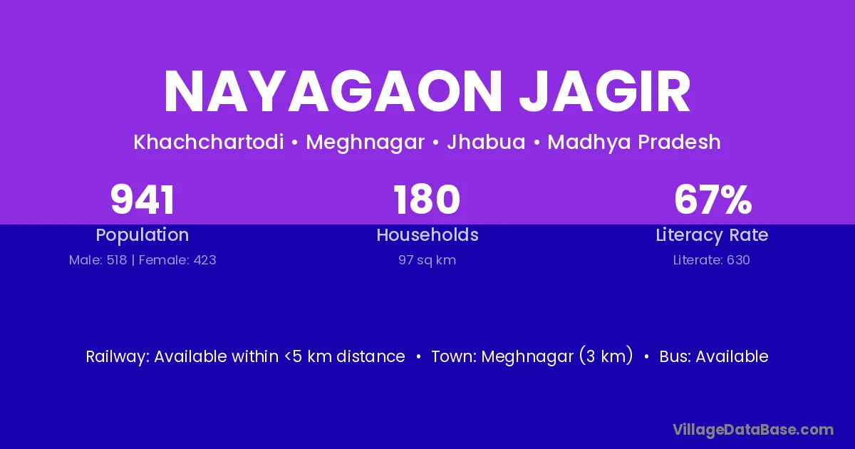 Meghnagar (3 km) is the nearest town to Nayagaon Jagir village for major economic activities and is located approximately 3 km away.