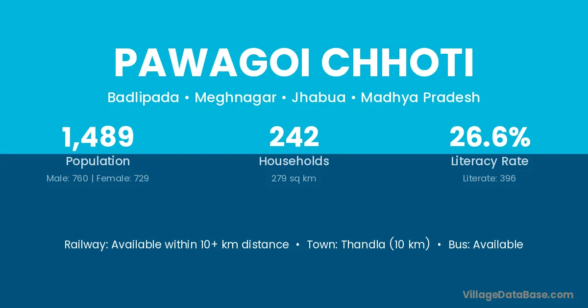 Thandla (10 km) is the nearest town to Pawagoi Chhoti village for major economic activities and is located approximately 10 km away.