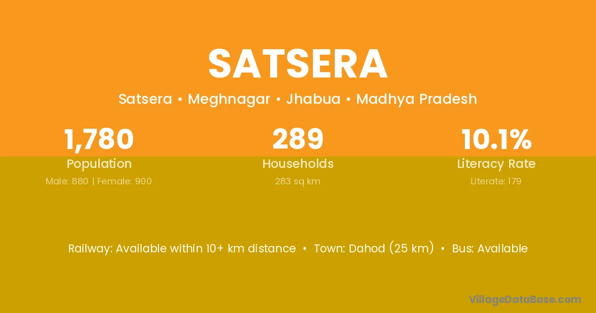 Dahod (25 km) is the nearest town to Satsera village for major economic activities and is located approximately 25 km away.
