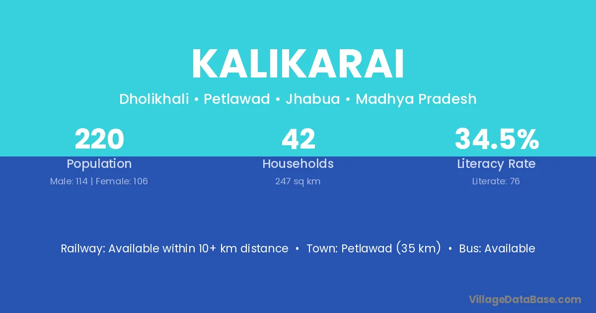 Petlawad (35 km) is the nearest town to Kalikarai village for major economic activities and is located approximately 35 km away.