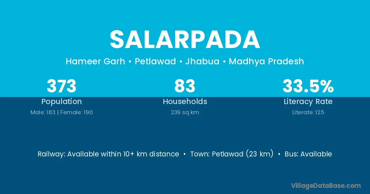 Ranapur (5 km) is the nearest town to Salarpada village for major economic activities and is located approximately 5 km away.