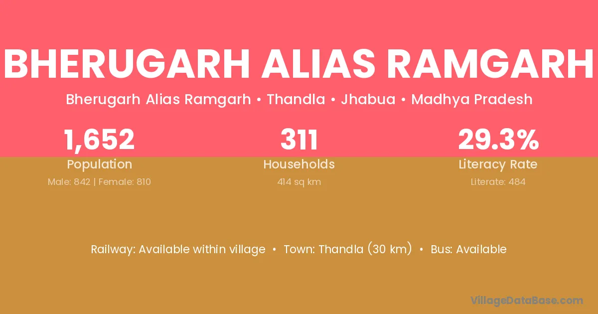 Thandla (30 km) is the nearest town to Bherugarh Alias Ramgarh village for major economic activities and is located approximately 30 km away.