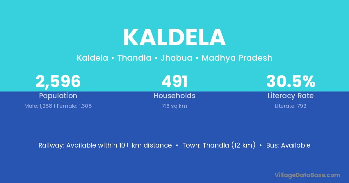 Thandla (12 km) is the nearest town to Kaldela village for major economic activities and is located approximately 12 km away.