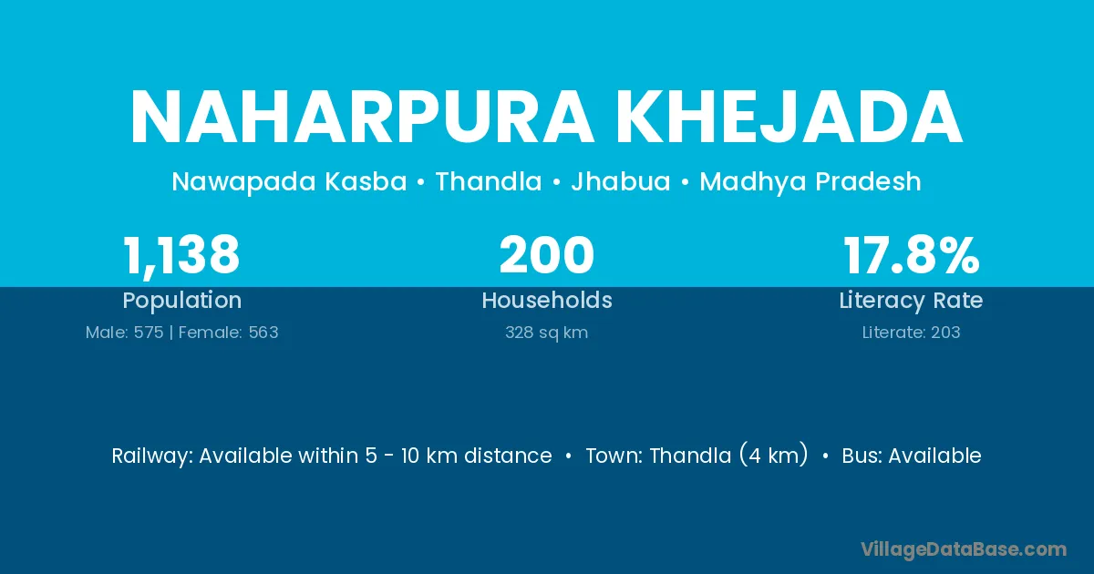 Thandla (4 km) is the nearest town to Naharpura Khejada village for major economic activities and is located approximately 4 km away.