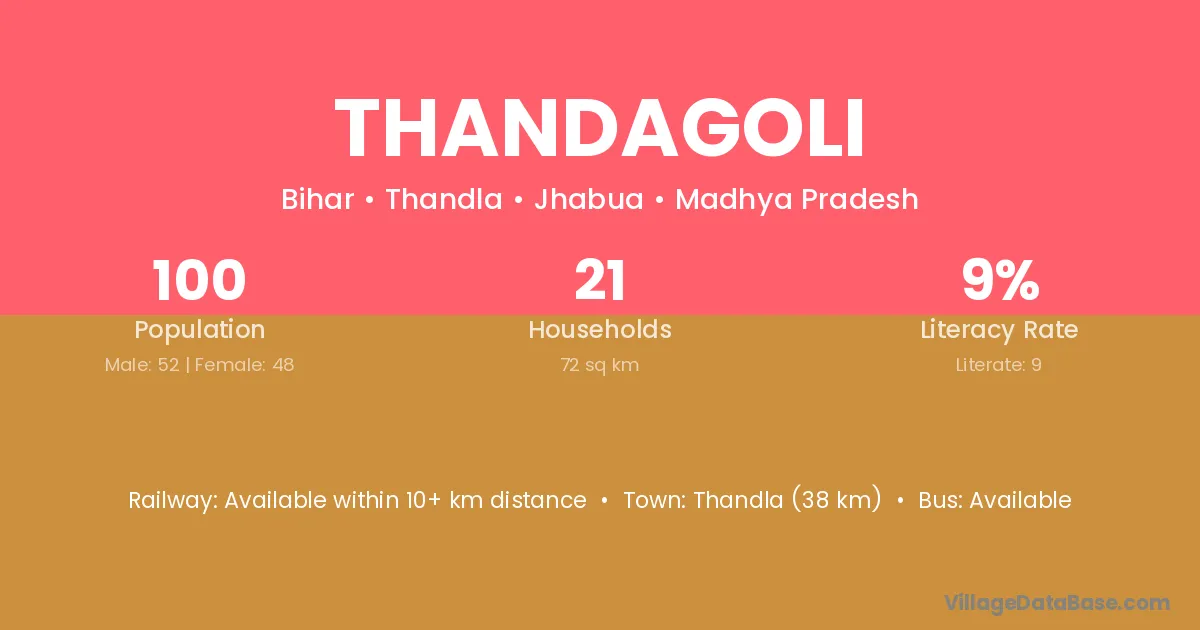 Thandla (38 km) is the nearest town to Thandagoli village for major economic activities and is located approximately 38 km away.